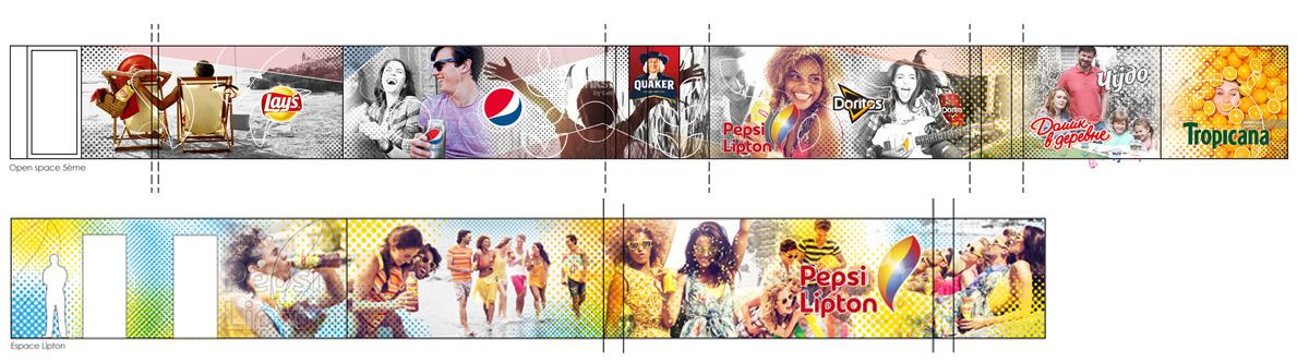 définition Le siège de PepsiCo Europe est situé en plein cÅ“ur de Genève. Les bureaux étaient dispersés sur trois bâtiments de la rue du Rhône. Le tout avait une identité visuelle très hétéroclite et cloisonnée à cause des rénovations successives s’étalant sur plus d’une décennie. Le projet de réaménagement s’est porté à la fois sur la typologie des lieux de travail et sur la manière de les caractériser dans l’espace. L’évolution des rapports hiérarchiques, la mobilité accrue des salariés et les nouveaux moyens de communication ont profondément modifiés les méthodes de travail. Le bureau devient mobile. Les espaces de travail doivent être repensés pour permettre aux collaborateurs de pouvoir travailler seuls, en groupe, isolés ou avec les autres. En parallèle, la firme Pepsi CO a une visibilité mondiale via les produits qu’elle diffuse et ses locaux devaient être un moyen de communication fort pour la société. Le projet regroupe les différents bureaux du siège dans un seul lieu, sur deux niveaux, autour de deux patios et le long d’une terrasse. Aménagés en open-space, des espaces lounges sont proposés à chaque niveau pour favoriser les rencontres et les moments de convivialité. Ces espaces sont toujours en lien avec les espaces extérieurs accessibles. Dans les open-spaces, des lieux de travail fermés de type talk-room viennent structurer les espaces et définir leur affectation. Le travail sur la couleur et la matérialité a été au cÅ“ur du processus. Les différentes zones de travail sont clairement identifiées par un visuel fort selon la marque pour laquelle travaille le groupe de collaborateur hébergé dans chaque espace. Des fresques murales, créées en interne par [GAA], composées des logos des marques et d’images fortes recouvrent les murs des locaux, en fonction de l’affectation des surfaces. Le branding du projet exploite ainsi les sens de la vue et du toucher. Imprimée sur un papier peint, la texture de ce dernier apporte un velouté qui contrebalance la présence forte des images sur les murs. L’utilisation accrue de la couleur pour structurer les espaces de travail est renforcé par un travail de jeu de textures dans le mobilier et au sol. localisation Genève / CH maître de l'ouvrage Pepsi Co date 2015-16 projet [GAA] GUENIN Atelier d'Architectures collaborateur(s) L. Rahaingonjatovo - A. Clemente - C. Commaille - O. Guenin |